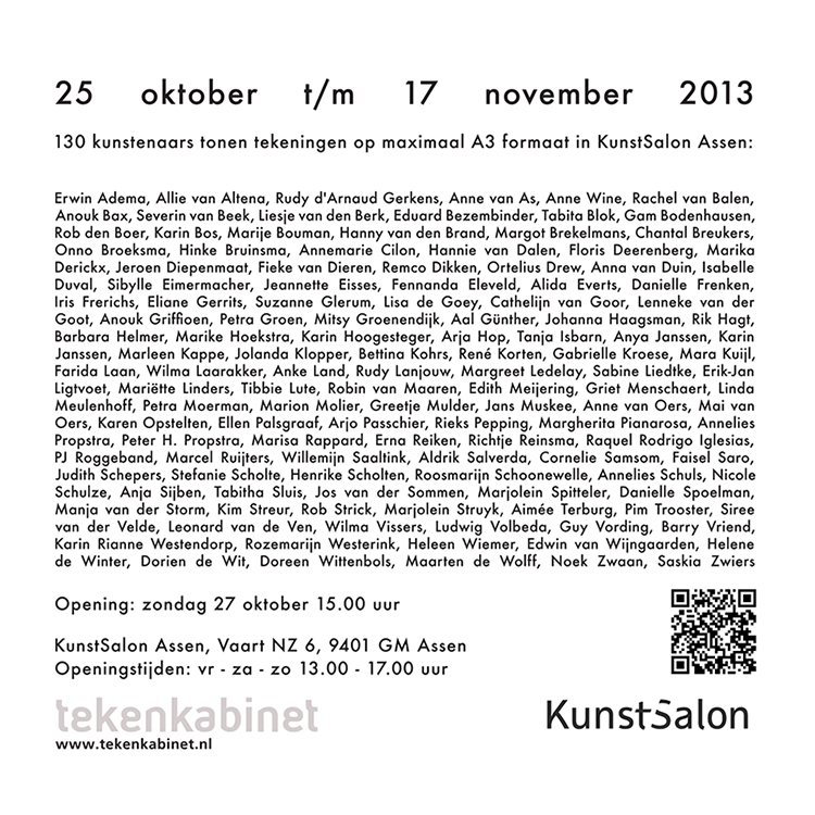 Toegang uitsluitend na reservering van een tijdslot op www.tekenkabinet.nl