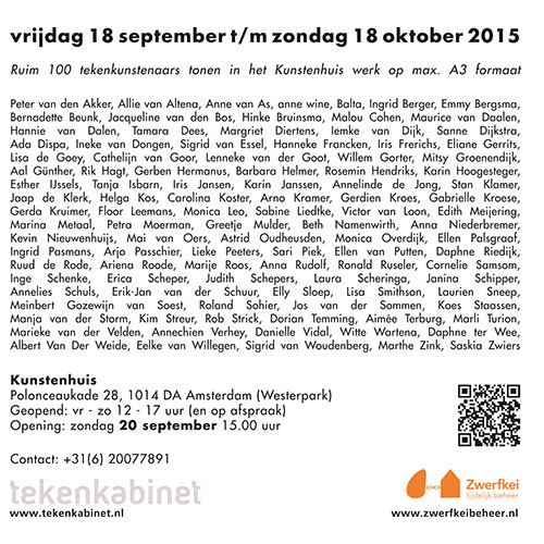 100 tekenaars tonen 100 tekeningen op (zeer) klein formaat – veel nieuwe werken in een geheel nieuwe opstelling in het fraaie Belgisch Paviljoen.
