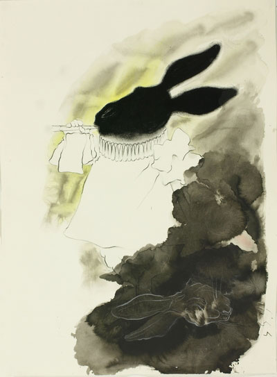 Kim Streur 2020, Depressed rabbit and protection-pad, 9,6 x 12,7 cm |