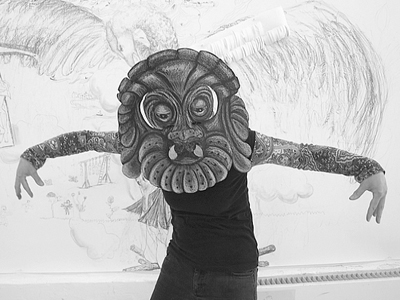 Tekengilde” maak ik papieren maskers in de Boterhal. De maskers